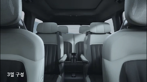 EV9의 실내는 아래와 같이 3열로 구성됩니다.