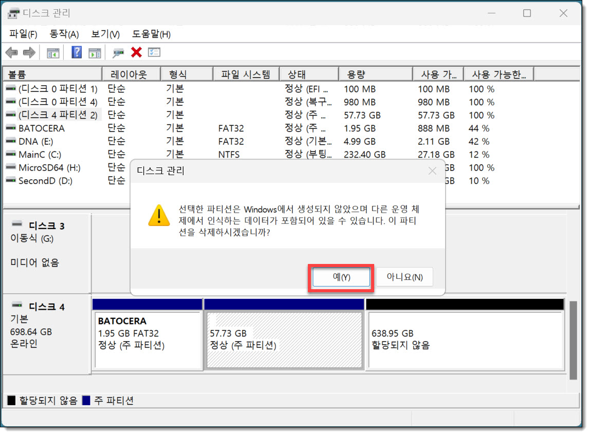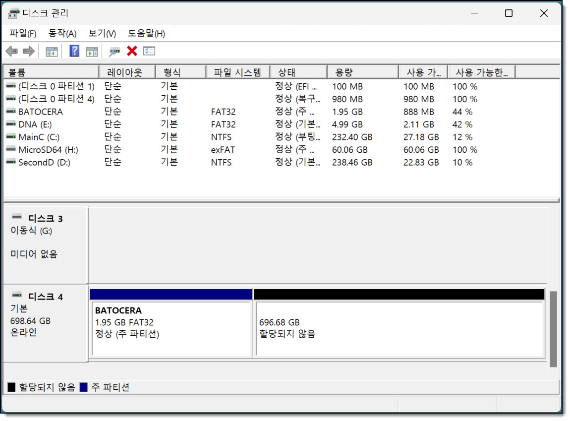 exFAT으로 설정된 영역은 이제 윈도우 탐색기에서도 볼 수 있습니다.