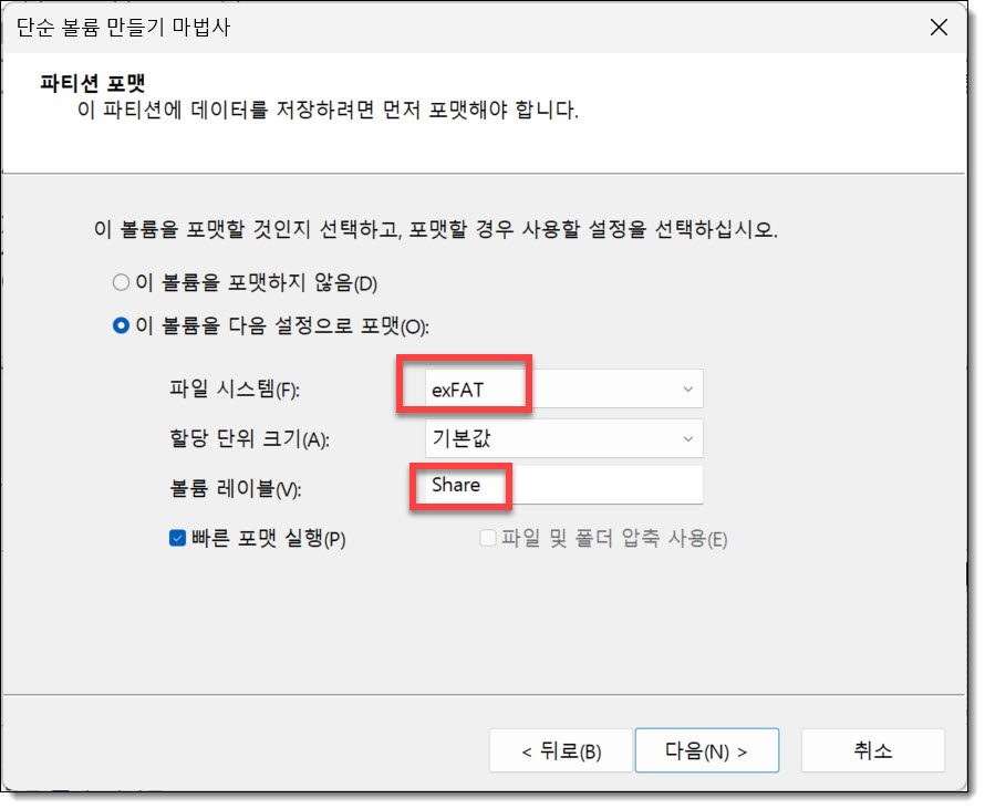 share 공간을 exFat으로 포맷하는 겁니다.