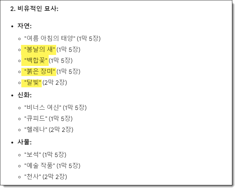 희곡에서 묘사된 줄리엣의 이미지가 있어요.