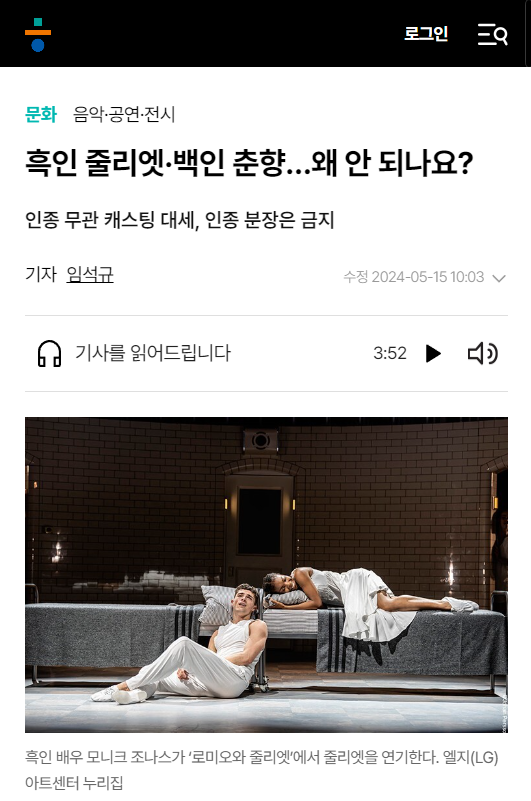 아~ 줄리엣역에 흑인 캐스팅하는건 아니지~~
