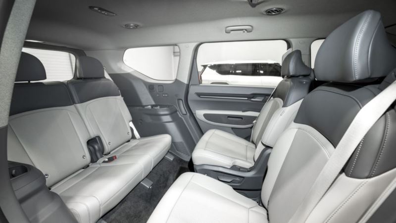 EV9의 실내는 아래와 같이 3열로 구성됩니다.