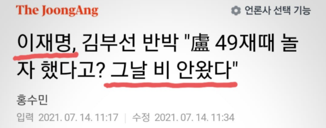 진실 : 전날에 이재명이 일기예보를 듣고 "내일 비와"라고 말했다.